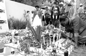 时值盛夏的南非,这两天却十分阴冷,犹如南非人民现在的心情,人们外出都不得不穿上厚外套。自12月6日凌晨曼德拉逝世的消息传出后,大量民众不顾寒冷,自发来到曼德拉位于约翰内斯堡近郊Houghton的住所外,悼念曼德拉。 6日上午,当本报特约记者赶到曼德拉的住所时,发现周围的街道全部被各类车辆占满,警察正忙着指挥交通。在曼德拉住宅附近,前来采访的各国记者都在忙着拍照采访,五六辆卫星转播车停放在周围,一些电视台正在现场直播民众悼念曼德拉的场景,有的记者则席地而坐忙着发稿。 正如来自英国广播公司(BBC)进行现场直播的记者在镜头前说的,“世界上只有一位伟人能将各个种族团结起来,那就是纳尔逊·曼德拉”,在悼念现场,除去黑人市民外,还有白人、印巴裔等来自各个种族的人,可见这位伟人用他特有的人格魅力感染了各个族群。 在悼念现场,黑人民众高举曼德拉的画像载歌载舞,在他们的文化中,葬礼上都要载歌载舞,以祝福逝者能进入天堂安息。其他民众则自发带来了鲜花和蜡烛。一位叫娜丽莎的黑人妇女,早晨从广播中得知曼德拉去世的消息后悲痛万分,身为用人的她特地向雇主请了半天假,带着一支蜡烛,徒步走了十几公里,来到曼德拉住宅前虔诚地悼念。 在南非索韦托的曼德拉故居前,人们也纷纷聚集在这里悼念这位伟人。这是全南非最悲恸的一天,各个政府部门都已降下国旗致哀,中国驻南非的使领馆也已降半旗致哀。