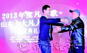 为福利院的老人洗脚、洗头,照顾老人起居,一份深深的感情伴随着这些行动,在聊城大学东昌学院学生李根的内心扎根。 在颁奖典礼现场,刚刚走上颁奖舞台的李根,意外地看到了聊城市社会福利院的孙瑞华老人来到了现场,两行热泪瞬间流下。“这么远,真没想过孙爷爷会来。”擦去泪水,李根张开双臂,把微笑挂在脸上,走向蹒跚着走到台上的孙瑞华老人,两个人紧紧拥抱在一起,一丝幸福在脸上洋溢。 这是一个特殊的环节,被李根照顾的老人为李根颁奖。孙瑞华拿过了奖杯,递到李根手里,两个人一起举起。 从2011年开始,孙瑞华就是李根长期照顾的老人之一。“人到老年,他们内心的孤独感和寂寞感会非常强。” “在福利院里,每周最期待的就是这孩子能来,他光说说话、唱个歌,我们就挺高兴。”在颁奖典礼舞台上,孙瑞华毫不掩饰对李根的喜爱。 一起来到现场的聊城市福利院副院长李春霞透露了一个小秘密,在福利院里,由于长期照顾福娃,尚未毕业的李根被福娃亲切地叫起了“爸爸”。 事实上,现在的李根不是一个人在战斗,“李根爱心服务队”也已参与到社会服务中来。“福利院的老人和孩子都需要照顾,现在不光李根一个人,在他的带动下,好多学生都来做义工,老人孩子的生活丰富了很多。”