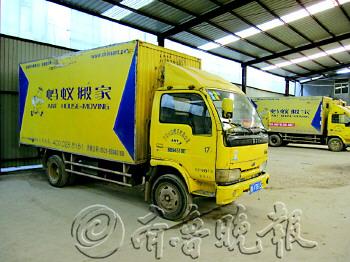 | ▲在自己发布的公告旁边,梁益清发现了假蚂蚁搬家的信息链接。 |  | ◤正规蚂蚁搬家公司的车辆。