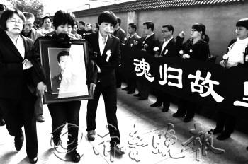 | 刘洪魁的姐姐抱着弟弟的遗像回到家乡。 本报记者 张晓科 摄 |