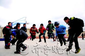 12月9日,烟台连续两天的雾霾终于消散,中小学体育课和课间活动得以正常开展。下午第一节体育课,幸福小学三年级二班的同学们迫不及待地跑向操场,开心地玩起了跳绳。