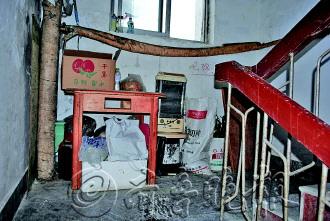 | 楼道内堆满了杂物。记者 吕修全 摄 |