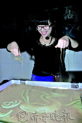 本报12月9日讯(记者 李孟霏 王震 通讯员 王霞 邹燕妮) “用沙子作画真是太神奇了!”6日上午,在凤林学校家校活动室,沙画师刘艺飞表演的时候,很多小记者都被她的艺术手法折服,透过光影变化,孩子们纷纷感叹不已。 7日上午,小记者们早早的赶到凤林学校多媒体室,静静的等待沙画师的美妙创作。沙画师并不是简单地用沙子画画,而是有一个闪光平台和一个大屏幕,老师的创作通过闪光平台上方的投影仪变换为大屏幕上的光影变换,奇妙极了。 凤林小学的王瑞和徐欢对老师创作使用的沙子产生了兴趣,他们发现这些沙子比一般沙子要柔细。“老师,你的沙子是不是经过特殊处理呢?”刘艺飞笑着回答,这些沙子都是她从网上买来的,经过特殊处理,“这些沙子就像是我的笔,我要根据沙子的变换来体现光影的变化,自然不能用普通的沙子了”。 随着音乐的响起,刘艺飞手起沙落,抹、点、洒、勾,大屏幕上展现出了幸福门、蓝天、大海。本来一把沙,竟变幻出各种光影,让大家啧啧称奇。刘艺飞画出了鲸鱼、章鱼、水母、小鸟等一个个小动物,很多孩子都在下面一边欣赏,一边赞叹。 孩子们终于按捺不住好奇心,跃跃欲试想上去看看。金东润学习画画好几年了,他围着老师的台子转了很久,很想尝试一下,老师也看到了他的心思,随口说,“你来试试吧。”金东润高兴坏了,他抓起一把沙子,在老师的指导下,画了几个小水母。后来,性格内秀的他,在妈妈鼓励下,问了老师几个创作上的小问题,老师一一做了解答。 看到金东润上去体验了,很多孩子也都坐不住了,他们纷纷举手,希望能上去体验一把。无奈现场的小记者太多,老师只能点名让大家体验,孩子们非常珍惜这难得的机会,他们小心翼翼的摸着沙子,看着台子,希望能学点知识。 努力了,就会成功! 这次跟随小记者活动去凤林小学学习的沙画,让我大开眼界,让我看到了什么叫真正的沙画。 画沙画的材料是没有任何颜色的沙子,看着和海边的沙子没有什么区别,就是这样的沙子,在沙画老师手里却变成了个神奇的东西------在展示台上老师撒了一些沙子,然后用手上下舞动,大海,幸福门,大螃蟹,水母,一个个的出现在我们面前,栩栩如生,美丽极了,最神奇的是,老师画了一幅上海的东方明珠塔,在旁边用手指又画了几下,就有了一群高楼大厦,后来,老师又在塔上画了一扇窗,立刻就把画面从外边拉回到了屋里,又是几下手指的舞动,又出现了一个男孩在打手机的画面,感觉像在讲一个故事一样,真是又美丽又神奇。 老师画完了,要选几个人去亲手体验一下,我使劲的举手,终于如愿以偿,老师教我们画小水母,看着老师画的那么容易,我想,不就是画个小水母吗,难不倒我,于是,我信心满满的画了一个,自以为画的很好,可是,和老师的一比,我的差好多。听老师说,她已经学习画沙画好几年了,看来,任何看似简单的事情,都要经过辛苦的努力才能成功。