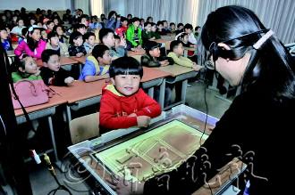 | ▲7日,60名小记者在凤林学校学习沙画技巧。 |  | ▲刘艺飞老师在讲台上展示沙画魅力。 |