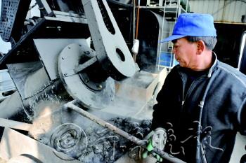 ▲供热企业的工作人员在清理煤渣。