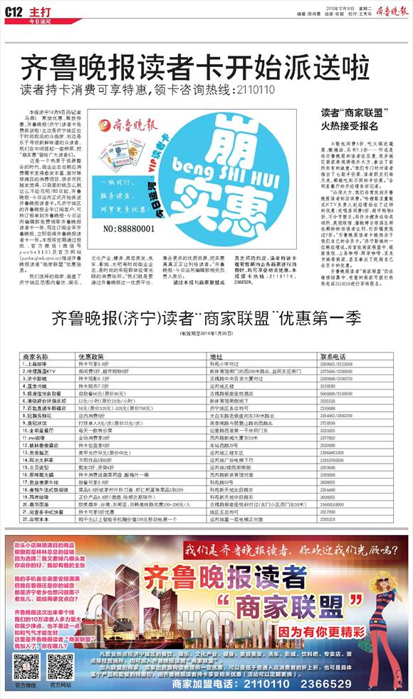 齐鲁晚报(济宁)读者“商家联盟”优惠第一季
