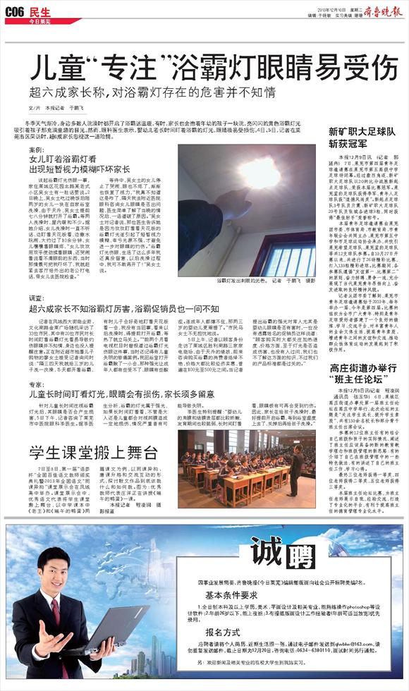 儿童“专注”浴霸灯眼睛易受伤