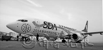 本报济南12月11日讯(记者 廖雯颖) 11日早上,152名搭乘山航济南飞广州航班的乘客成为第二架“世园号”彩绘飞机首批乘客。 据悉,第二架“世园号”彩绘飞机是山航从美国波音公司引进的737-800型客机,喷绘全部在美国完成,比第一架颜色更为丰富。从外观上看,机身主体喷绘七彩飘带,前方印有世园会会徽“七彩花艺”,会徽下方写着“2014青岛世界园艺博览会”一行大字。机身后方印有“让生活走进自然”的世园会主题以及吉祥物“青青”的形象,还点缀着栈桥、帆船、天主教堂、五月的风等青岛元素,整体造型鲜艳,十分醒目。此外,客舱内包括座位头垫、水杯、杂志也充满世园会的相关元素。今年11月2日,第一架“世园号”飞机首航,由青岛飞往北京。如今两架“世园号”并驾齐驱,共同成为2014年青岛世界园艺博览会的空中形象大使。