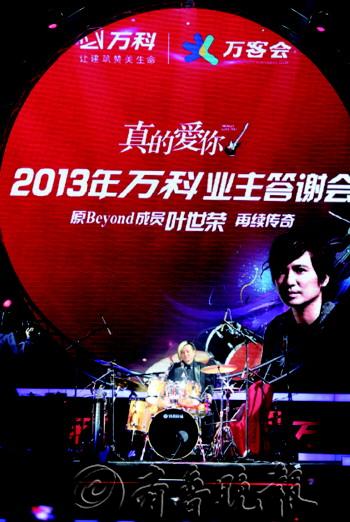 活 动 叶世荣激情献唱万科答谢会 2013年12月7日晚,由济南万科全程定制的“真的爱你——济南万科大型业主答谢会”于省体育中心开幕。灵魂乐手叶世荣(原Beyond成员)全场助阵,为万科业主带来经典回忆。活动邀请了万科天泰·金域国际I期、II期及万科城的4000余名业主齐聚一堂,共享经典幸福时光。 据了解,本次答谢会是济南万科的首届大型业主答谢会,由济南万科团队全程定制,也是万科的首场定制型答谢会。济南万科也希望通过这样一场追忆经典的答谢盛会,让尚未入住的业主提前体验万科的幸福大家庭,同时也想借“真的爱你”这样一个主题,表达万科进驻济南一年来对这座城市、对泉城人民的衷心感谢。