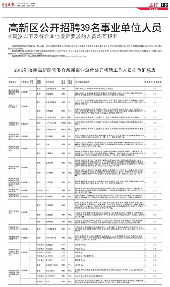 高新区公开招聘39名事业单位人员