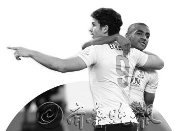| ◤埃尔克森和穆里奇一起庆祝进球。 新华社发 |
