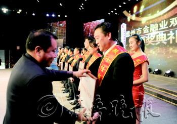 12月12日,2013年度德州市“双十佳服务银行”颁奖典礼在广电中心演播大厅隆重举行,德城区农村信用社在全市参选的224家银行业金融机构中脱颖而出,被授予德州市“双十佳服务银行”称号,市金融办副主任冯立潮为该社付小剑理事长颁奖,此奖项是对德城区农村信用社积极为德州经济发展提供优质服务的充分肯定与鼓励,促使该社以此为契机,更好地为德州经济发展服务,全面提升德州市银行业服务质量。