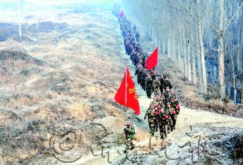 | 战士们在拉练途中。 |  | 背上行囊准备出发。 |  | 出发前进行宣誓。 |  | 中途休息,欣赏精彩的文艺节目。 |