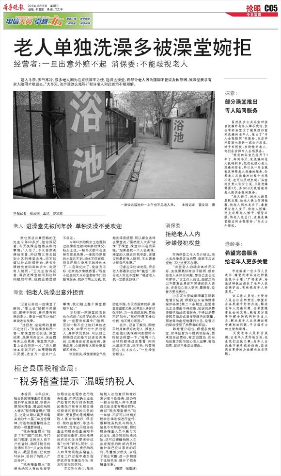 老人单独洗澡多被澡堂婉拒