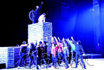 B 平均不到20岁,年轻演员挑战沧桑 23日这一天,剧组人员对整部剧的大型道具进行了调试。除了晃动的木船、巨大的船闸之外,演出还启用了电影中常用的“威亚”。第五章节踏浪中,船工们与汹涌的运河抗争的时候,不时的有演员吊着威亚在舞台上飞跃,视觉感十足。 和以往济宁的杂技不同,“踏浪”一幕中的杂技表演给杂技演员们出了不少难题。马志广告诉记者,在采风的过程中他得知济宁杂技闻名国内外,而爬杆更是拿过大奖,因此从一开始他就打算融入到剧中。“但说起来容易做起来难,平时爬杆表演是固定在地面上的,而现在我们把爬杆作为船桅,演员要在不断的晃动中爬上爬下,难度大了许多。”其中一名杂技演员说,在晃动的杆子表演他们练习了很久,可即便如此,爬杆动作也不如以前的幅度大,效果好。 整部《我家就在岸上住》有演员80多人,最年轻的演员只有14岁,如何让这些平均年龄不到20岁的演员,演绎出运河的古朴历史感?对此马志广说,除了舞美方面尽可能体现之外,平时彩排中主创人员也尽可能去给演员灌输一些老运河的知识。“就像这部巨大的船闸,在过去运河沿线有很多这样的水利枢纽,但现如今大多已弃用,倘若演员们不知这些船闸是如何使用的,他们又怎能演出当时船闸工人的形象?” 观剧最低可享20元惠民票价 记者从济宁演艺集团了解到,该剧将分别于28日、29日、30日在声远舞台演出三场。届时将有180元、60元和20元(惠民票)三个档次的门票供市民选择。“我们每场都拿出一部分门票,按20元每张的价格出售,让市民得到更多实惠。”演艺集团一名负责人介绍说,声远舞台将在近日开始售票,票务咨询电话:2313708。
