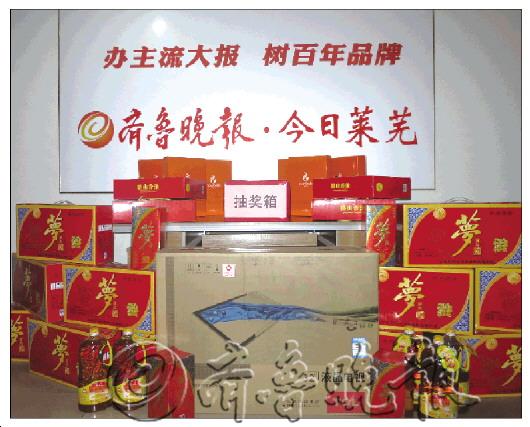 邮局工作人员抽出第一位幸运读者。 记者 于鹏飞 摄 部分奖品 记者 于鹏飞 摄 ★ 订报抽大奖 ★ 以下读者快来领奖吧 奖品 姓名 收据号 TCL电视1台 漫道小学 4232191 暖倍儿内衣1套 张亮 4232147 卢汉书 4002149 鹏山香油1提 张梅玉 3712140012137140 程龙 4232192 崔玉玲 0000109 鲁花花生油1桶 张训峰 2574161 亓景明 3712140012237300 闫丙福 2692290 吕式荣 3712140012859130 亓卿玺 3712140012472850 程荣芳 3712140012078980 纪荣娟 2441438 金鹰健身卡1张 李夫茂 3712140013011780 王庆福 3712140012653660 陈晓芳 3712140012918210 李丰和 2613873 杨晓杰 3712140012071010 刘猛 3712140012829609 赵文国 0060925 景忠俊 3712140012423140 程稼民 2613741 安奎龙 3712140012288244 李新德 2628890 红楼梦酒1瓶 魏东培 2574283 宋其瑞 3712140012550750 夏静 2574896 宋逢福 2691434 李慧 2441186 邱传绅 2441186 边乐忠 2441682 刁兴超 4462357 刘燕 2440842 贾培元 0229894 李兴玺 3712140012359450 柳军寅 2628659 亓入忠 2699505 梁永 3712140012373050 王仕锋 4232381 纪荣泉 2574722 孙积连 2629883 王新成 2698430 朱从高 4232196 请以上还未领奖的读者到本报今日莱芜编辑部领取奖品