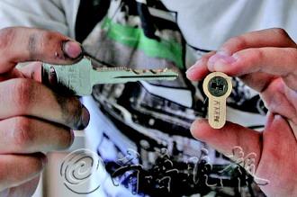 | ▲防盗性能较好的超B+锁芯,技术人员也得一个多小时上才能开启。 记者 王震 摄 |  | ▲普通A级锁芯,小偷几秒钟就能打开。记者 王震 摄 |