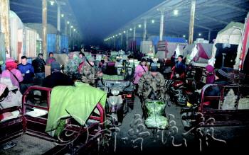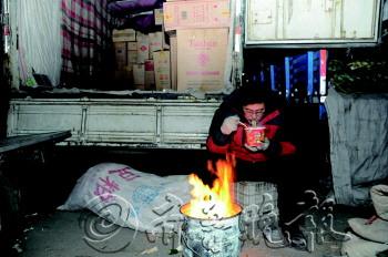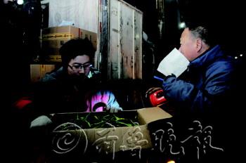 | ▲天气太寒冷,王福勇的炉子旁聚集了很多菜商。 |  | ▲趁着没有客户,王福勇赶紧吃几口方便面。 |  | ▲凌晨3点,菜市场已经是一片忙碌的景象。 |  | ◤王福勇打开箱子让商贩验货。 |  | ◤王福勇将杭椒送到买家的车上。 |