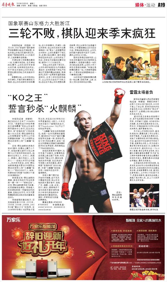 “KO之王”誓言秒杀“火麒麟”