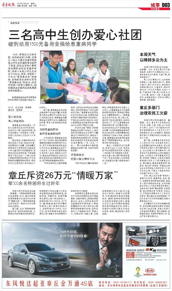章丘斥资26万元“情暖万家”