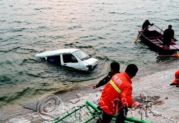 本报96706热线消息(记者 王兴飞) 24日晚,历城区仲宫镇卧虎山水库发生一起悲剧:一辆面包车在水库北公路上行驶时突然失控向水库冲去。在撞飞一根直径十多厘米的石柱后,面包车又撞倒一段6米多长钢制护栏扎入水中,司机当场身亡。 事发地点位于历城一中向西约1公里的路段。24日上午10点多记者赶到时,民警和消防队员正在商讨打捞方法。现场,公路南侧6米多长的钢制护栏被撞倒,倒在水库堤坝上,护栏旁的一根高半米、直径十余厘米的石柱被撞飞到七八米外。距离这处护栏缺口八九米远的公路北侧车道上,留下一段黑色刹车印。 附近居民王女士称,24日晚上8点半左右,她曾听到“砰”的一声响,“声音很大,一听就知道是撞到了东西,接着就没声了”。 现场一位民警称,救援队员刚刚使用了大磁铁尝试定位事故车辆,但由于水库波浪大未能成功,打捞人员尚未寻找到事故车辆在水库中的具体位置。 下午2点,消防队员用护栏和绳子制作了简易的打捞设备,在一条渔船的帮助下开始定位并打捞事故车辆。2点20分左右,打捞人员终于确定,车辆沉没在护栏正南方,距离岸边七八米远的水中。在消防队员、民警和居民的共同努力下,沉没在水中的面包车终于被拉上岸。 “这辆车你认识吗?车里有个人卡在副驾驶位置……”民警尚未说完,申女士就已确认车里已经死亡的男子是自己丈夫,随后申女士被民警劝离现场。2点30分,男子尸体被从车内抬出,仍保持着死前挣扎的姿势。随后,男子尸体被急救车拉走。 2点50分左右,事故车辆被整个吊到路面上。从车身上看,撞击造成的变形遍布整个车身,车头部位受损严重,面包车的门也已经不见踪影。现场救援人员分析,车在撞断石柱后可能发生翻转并撞击到钢制护栏上,随后沉入水库中。 记者在现场采访到一位知情居民。该居民说,死者家住在党家庄镇寨而头村,30多岁,一直从事修车生意,前不久刚在仲宫镇买了房。“家里有两个女儿,小的也就一岁多,挺可怜的。” 目前,对于事故原因,交警部门尚未有明确说法。