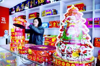 | 圣诞主题的烟花摆上柜台。 本报记者 张晓科 摄 |