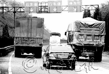 | ◥在高速公路上,大货车长时间占用超车道的情况很常见。(资料片) |