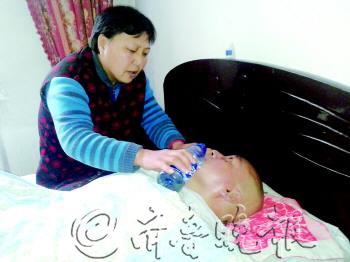 粉莲街小区的杨秀亭照顾瘫痪在床的丈夫20多年,生活中有苦有甜。新年临近,她还想给家里增添点电饭锅及米油等生活用品。 26日上午10点左右,杨秀亭给丈夫曹文光喂稀饭,她用勺子撬开嘴巴,倒一口稀饭,再用手把嘴口合上,一顿饭要喂一个半小时。曹文光瘫痪在床20年,全靠妻子杨秀亭悉心照顾着。 杨秀亭家收拾得很干净,晾台上挂满了丈夫的尿布,窗户擦得很干净。“窗户干净了屋里亮堂,屋里明亮自己心里舒服。”杨秀亭说。 26岁时,丈夫突然间得了脑出血,从此失去知觉,在床上一躺就是20年。 “1994年5月26日,永远也忘不了那天。”杨秀亭说,孩子才上幼儿园,早上6点左右起床收拾完后,叫丈夫吃饭,到床头叫他,没有吱声,把他扶起来后眼睛向上翻,不会说话了。 杨秀亭吓得瘫坐在地上。在邻居的帮助下,把丈夫送进医院,做手术保住了性命,但是病情太严重,丈夫昏迷了三个月。 那三个月没白没黑,陈秀亭天天给丈夫说话,但丈夫紧闭着双眼。后来终于醒了,但成了植物人,没有知觉、没有思维、永远在床上躺着。 担心丈夫生褥疮,每隔两个小时,陈秀亭就会给他翻一次身,床单、被罩一个星期洗一次,头发两个星期理一次,胡子天天都刮。每天早晨给丈夫洗脸、擦手、刷牙、喂饭,得花两个多小时,这种生活,杨秀亭坚持了20年了。 丈夫得病时,两个双胞胎儿子才上幼儿园,现在一个儿子考上了大学,一个儿子上了技校。“我的命就这样了,有时很闷,会捂着毛巾大哭一场,哭过就好了。”杨秀亭说,丈夫没生病前对自己很好,俩人从来没有吵过架。就凭着对自己的好,也会好好照顾丈夫,已经习惯这样的生活。 谈到新年愿望,杨秀亭叹了口气说,除了低保外,原来的单位每个月只给100元的补助,家里的米和面都是亲戚给的。家里的一桶油吃了四个多月,基本上没有了,希望有个蒸米的电饭锅和米面油等生活必需品。