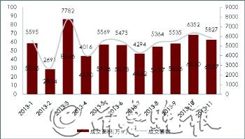 从2009-2013年济南市商品住宅年度成交走势图看,济南市商品住宅成交量呈现稳定增长的态势。2013年济南市商品住宅成交量为622.97万□,环比增长15.28%。 2013年济南市商品住宅成交量为622.97万□,月均成交量为56.63万□。从2013年济南市商品住宅月度成交走势来看,年内高峰出现在上半年3月份,9-11月份,市场成交表现也较为亮眼,月均成交63.14万□,“金九银十”完美收官。