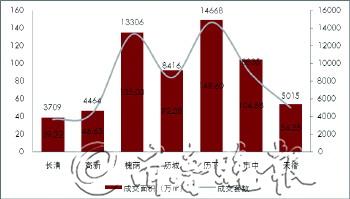 2013年,济南市商品住宅成交区域分布不均衡,历下区和槐荫区分别为冠亚军,市中区和历城区追随其后,长清区、高新区、天桥区成交量略显不足。