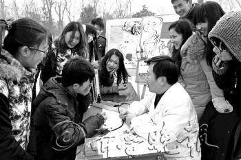 针对目前部分大学生过度餐饮垃圾食品、熬夜、抽烟、饮酒、不爱运动等不健康生活方式,聊城大学美术学院请来社区医务人员为大学生义诊,倡导健康生活新方式。 本报记者 邹俊美 摄
