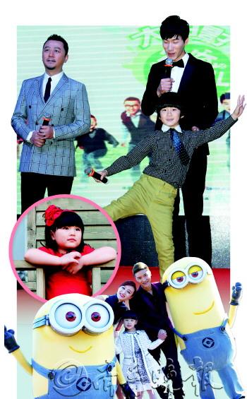 将于1月10日公映的好莱坞动画电影《神偷奶爸2》,也与《爸爸去哪儿》套近乎,北美当地时间22日,为电影《神偷奶爸2》配音而首度触电的“森碟”田雨橙与爸爸田亮、妈妈叶一茜赴美国洛杉矶,在环球影片的“小黄人”游乐园与“小黄人”共度圣诞。该游乐园以《神偷奶爸》系列动画故事场景为主题,戏里抢镜的“小黄人”化身人偶在公园随处可见。据悉,田雨橙将为《神偷奶爸2》中的小女儿艾格尼丝奉献中文版配音。