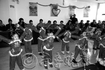 | 高新社区联欢会上,一群小朋友在表演节目。