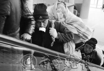 | 几位买上票的打工者着急赶车。 本报记者 姜文洁 摄 |