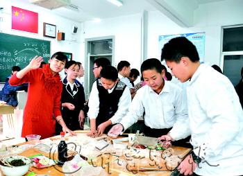 2013年12月31日,济南外国语学校1221班的孩子们和老师一起,和面、擀皮、包水饺,像一个温馨和睦的大家庭,举行了传统、欢乐的跨年活动。 通讯员 张丽 摄