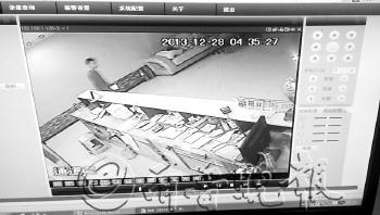 | 王某手拿平板电脑离开洗浴中心(视频截图) |