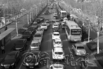 1月1日,天气晴暖,很多市民选择外出购物游玩,在湖滨中大道经常出现堵车长龙。 本报记者 王小会 摄