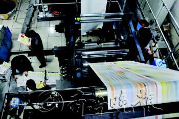 | ▲印刷机器启动,报纸就这样“出炉”了。 |  | ▲工作人员在检查制版清晰度。 |  | ▲工作人员在做印刷前的最后准备。 |  | ▲工作人员利用印刷前的空闲时间吃饭。 |  | ▲工作人员在整理报纸。 |