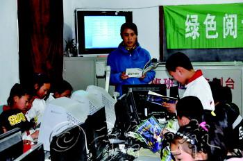 | 任增颖正在给小学生上公益环保课。学生手中的书,是她自费购买送给孩子的。 受访者供图 |