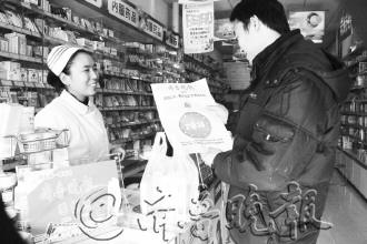 | 王先生在幸福人药品超市买《齐鲁晚报》。 本报记者 张冬梅 摄 |