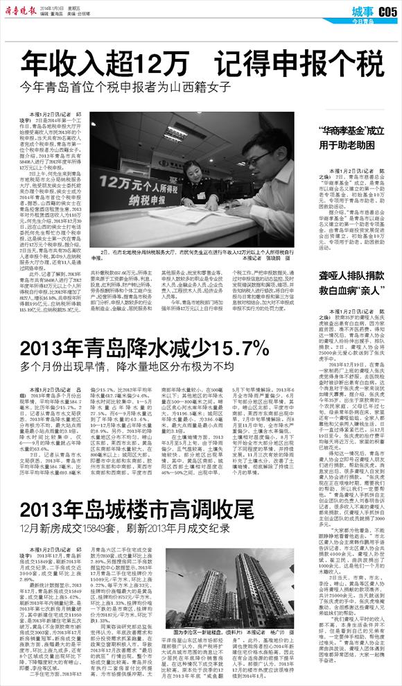 2013年青岛降水减少15.7%