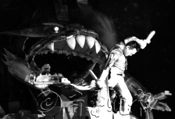 5日,济宁市体育馆,大型科幻儿童剧《变形金刚3000》上演。作为国内首部采用3D全息影像特效的儿童剧作品,小朋友们在剧中穿越千年,与活生生的“变形金刚”互动。图为演出场景。 本报记者 张晓科 摄
