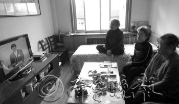 |  | 5日上午,市南区天台路56号的几位居民在家收看青岛政府部门一把手向市民报告工作的直播。 杨林 摄 |