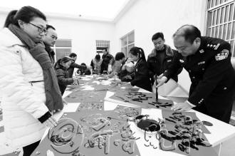 5日,市中公安分局永安派出所书法爱好者联合辖区内鑫昌路小学的小书法爱好者,共同走进当地永安乡聂庄村为村民免费书写春联,把“福”送到村民家中,喜迎春节的到来。 本报通讯员 吉吉吉 曹新宇 本报记者 袁鹏 摄影报道