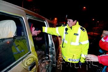 | 一辆面包车荷载8人,实载13人被查。 本报记者 崔岩 摄 |