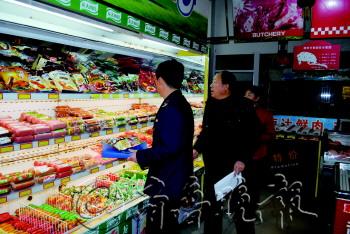 工商人员在检查五香驴肉。 本报记者 张汝树 摄