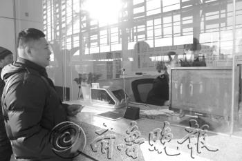 | 9日,青岛火车北站人工售票窗口和自动售票机正式开始对外售票。 本报记者 吕璐 摄 |