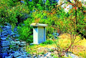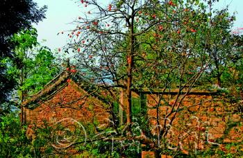 | 三教堂被各种树木包围,尤其是柿子树不少。 |  | ▲黄鹂泉外景。 |  | ◤三教堂庙宇内精美的石钟亭。 |  | ▼黄鹂泉书院遗址,院内的石碑上刻写的碑文可谓价值连城。 |