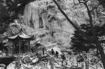 8日,由于气温降低,平度茶山风景区出现美丽的冰瀑奇观。据了解,这样的冰瀑在平度茶山多达4处,最大的冰瀑宽度有10多米,高度约22米。