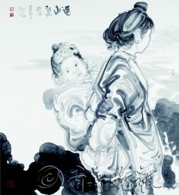 从表现都市繁华的“都市水墨系列”,到远离城市乡野的“背景是春天”,从表现社会人文的“尚宠系列”,到描写不同民族风俗的“少数民族系列”,赵初凡的画里没有激烈和愤世嫉俗的色彩,他总是在静静的描写,安静的诉说。“现代人比起古代人更具有一种精神上的缺失和渴望,所以我在身边人、身边事儿上下起了工夫。一直以来,我都尝试把造型和笔墨结合起来,我不模仿别人,也不重复古人,我只走我自己的路子。”的确,赵初凡在从工笔转到写意中,创造了一种适合自己表达的画面思想,“我的绘画打破了人物、山水、花鸟的局限,事实上我认为这几个题材之间本来就没什么局限,随性挥洒,随心所欲,也更容易浑然天成。” 赵初凡以写意的面貌示人,也更想把这种写意水墨提炼成一种语言。他画面中那十分丰腴,十分具有体积感和视觉舒适度的线条,物象结构上那虚实起伏的流畅转折,线与面的互动,水与墨的交融,都使得他那些接近内心、表现社会现实的厚重题材,减了一份压抑,多了一些雍容和平和。赵初凡正是用他这种特有的线条与方式,去诉说他自己的内心。